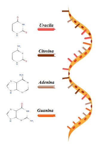 Repare que a composição é semelhante a do DNA. A diferença é que no lugar da timina, no RNA tem-se a uracila.