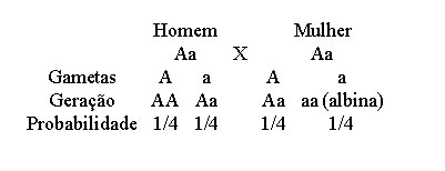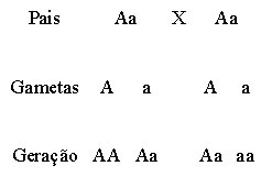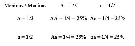 A fecundação ocorrerá ao acaso, pois não sabemos qual espermatozoide, A ou a será responsável pela concepção ou qual célula feminina será fecundada A ou a.