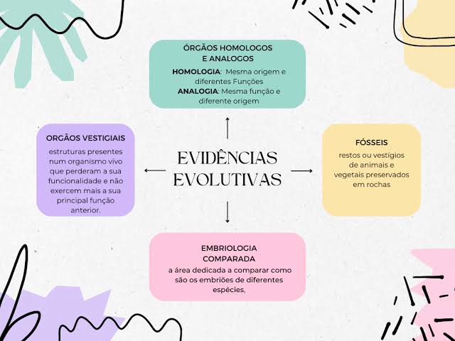 2. **Homologia**: Estruturas homólogas são aquelas que têm a mesma origem evolutiva, mas podem ter funções diferentes. Por exemplo, os membros anteriores de mamíferos, aves e répteis têm a mesma estrutura básica, sugerindo um ancestral comum.
