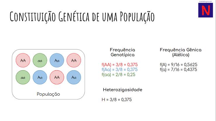 3. **Frequência Genotípica**: A frequência genotípica é a proporção de cada genótipo possível em uma população. Ela pode ser determinada a partir das frequências alélicas e seguindo os princípios das leis de Mendel.